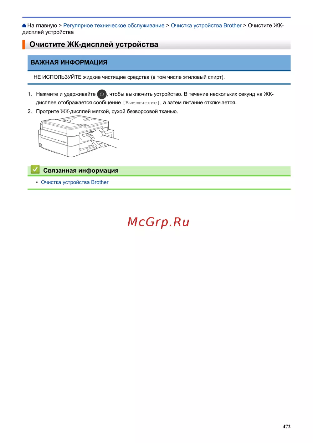 На главную > Регулярное техническое обслуживание > Очистка устройства Brother > Очистите ЖК-