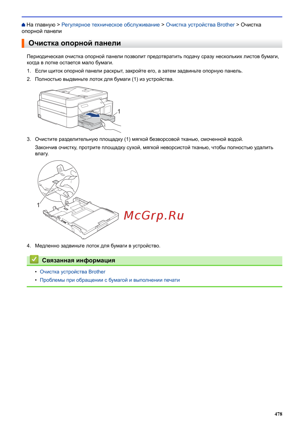 Периодическая очистка опорной панели позволит предотвратить подачу сразу нескольких листов бумаги,