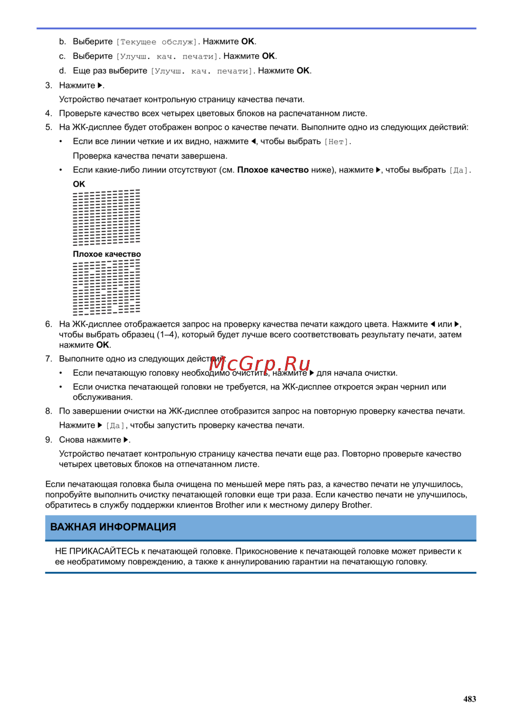 Если печатающая головка была очищена по меньшей мере пять раз, а качество печати не улучшилось,