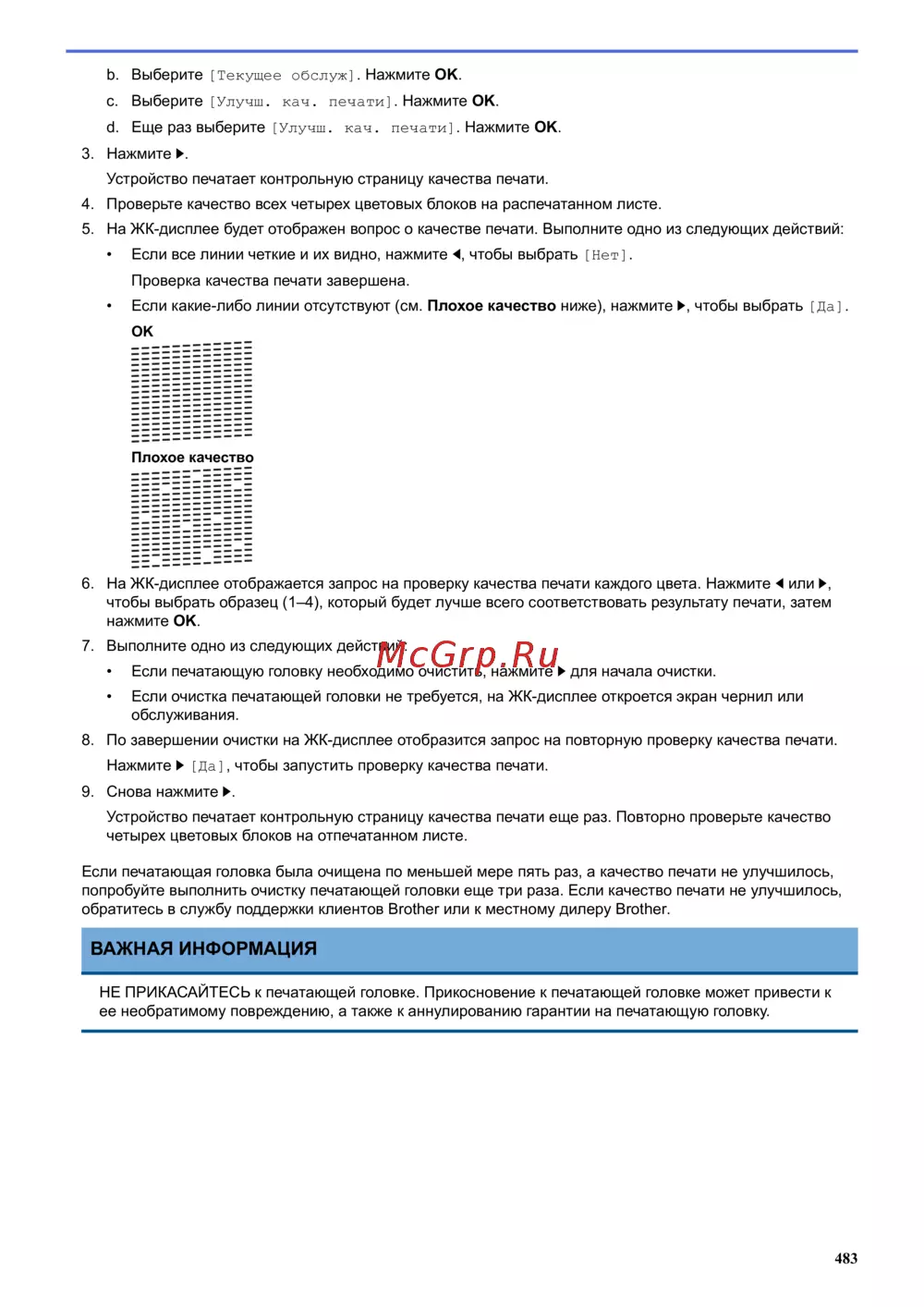 ее необратимому повреждению, а также к аннулированию гарантии на печатающую головку.