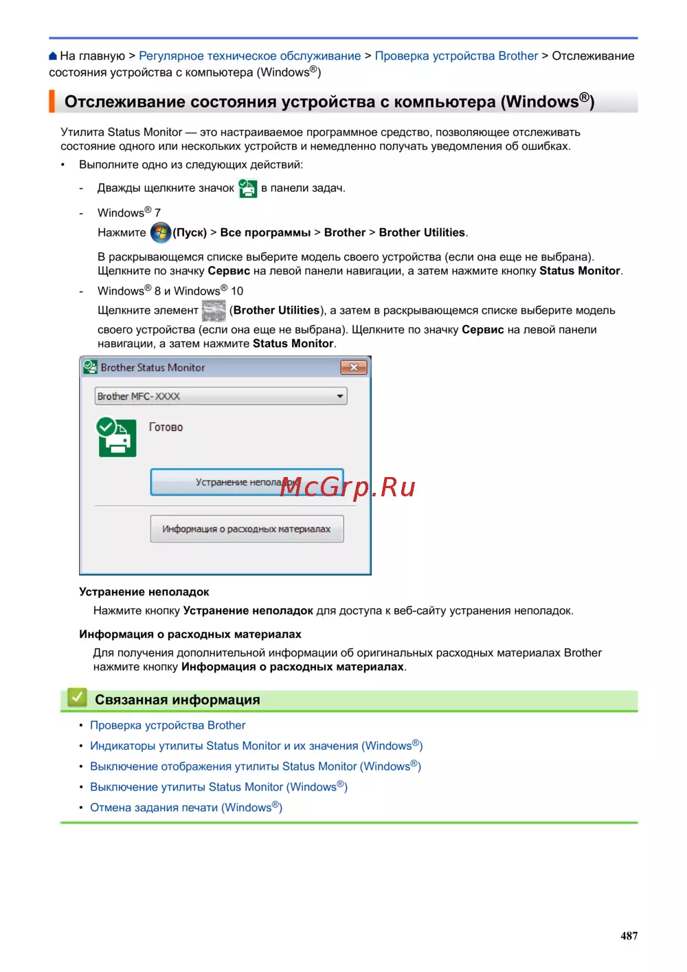 - Для загрузки последних обновлений драйверов перейдите на страницу файлы используемой модели на веб сайте brother solutions center по адресу support brother com и загрузите полный пакет драйверов и программного обеспечения p.558