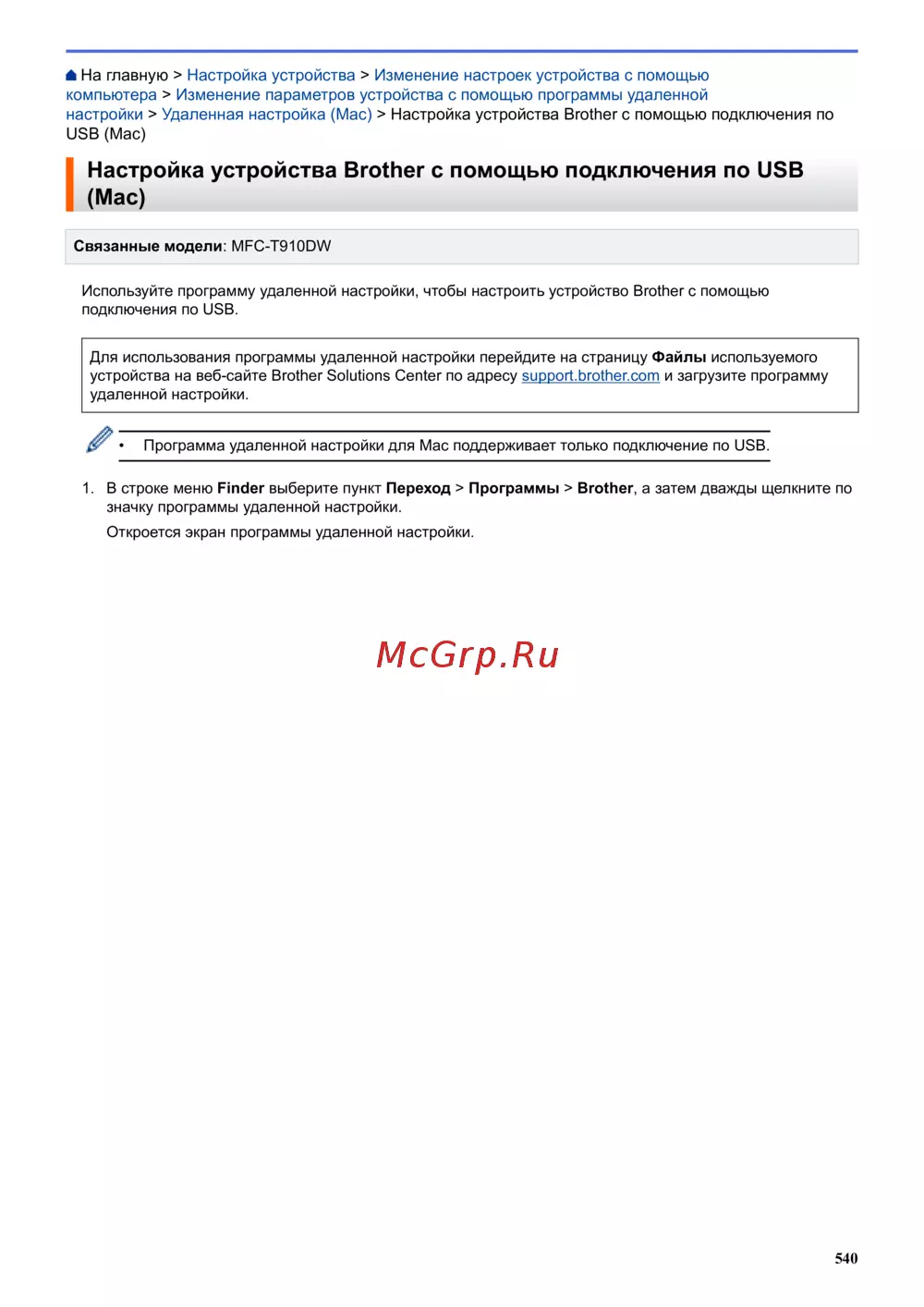 - Настройка устройства brother с помощью подключения по usb mac p.545