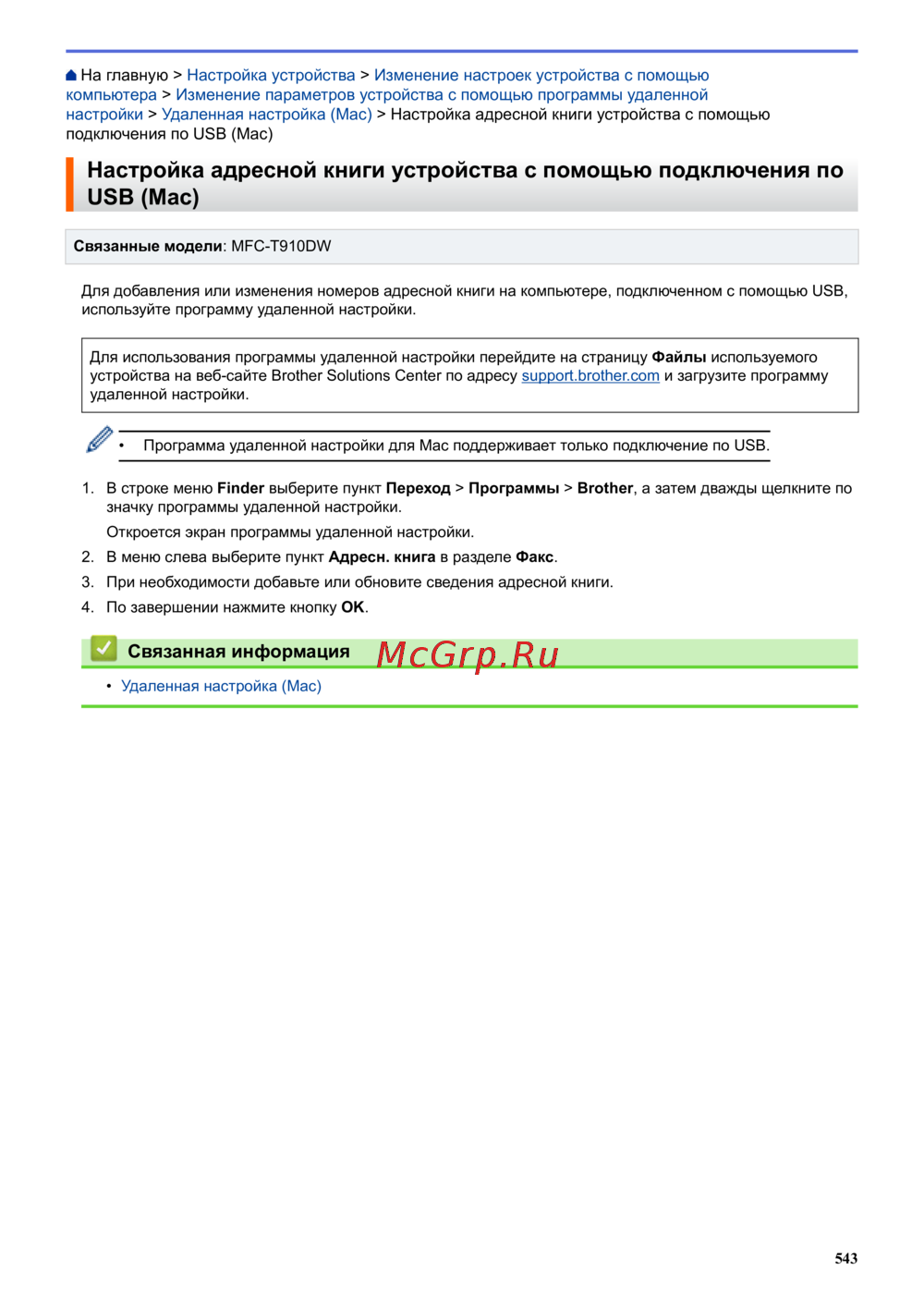- Настройка адресной книги устройства с помощью подключения по usb mac p.549