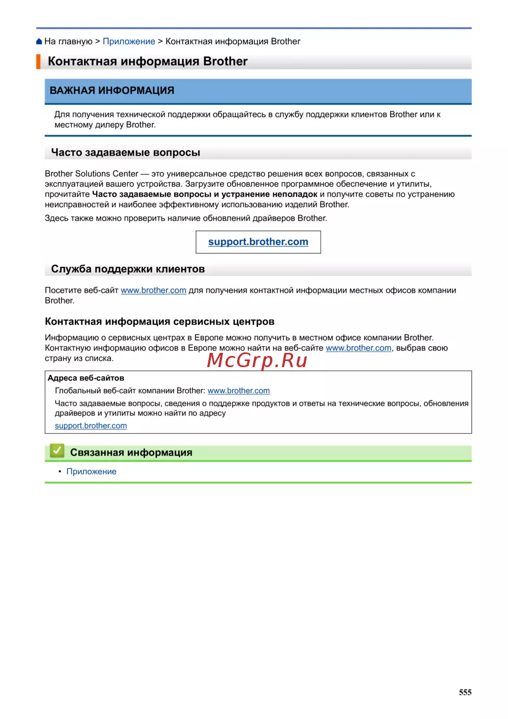 - Для загрузки последних обновлений драйверов перейдите на страницу файлы используемой модели на веб сайте brother solutions center по адресу support brother com и загрузите полный пакет драйверов и программного обеспечения p.558