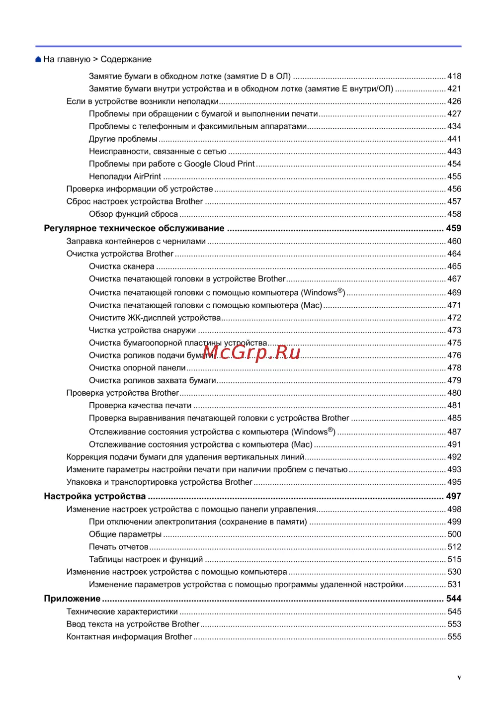 Сброс настроек устройства Brother ........................................................................................................ 457