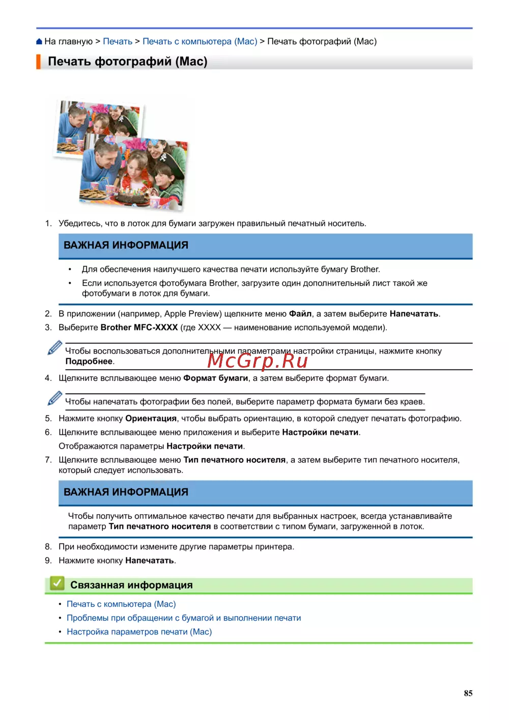 На главную > Печать > Печать с компьютера (Mac) > Печать фотографий (Mac)