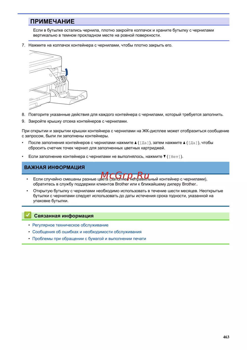 8. Повторите указанные действия для каждого контейнера с чернилами, который требуется заполнить.