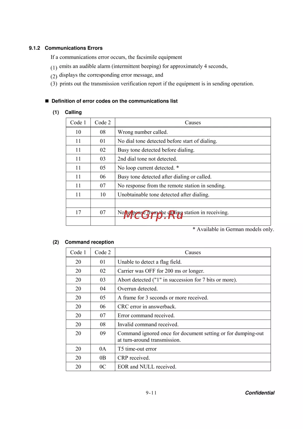 9.1.2 Communications Errors