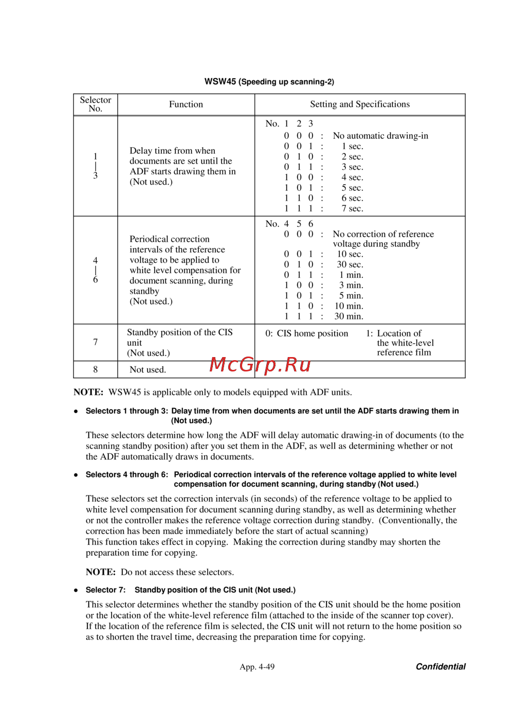 NOTE: WSW45 is applicable only to models equipped with ADF units.