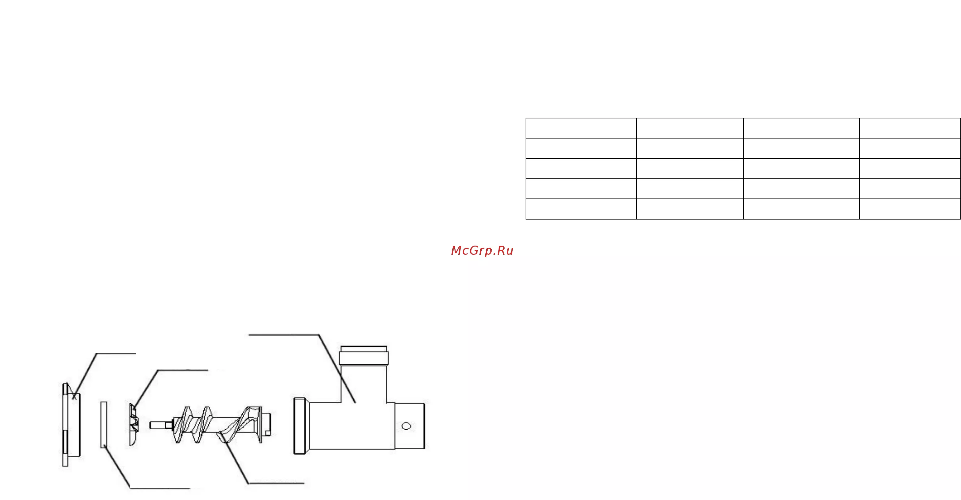 - Как двигатель войдет в нормальный режим сырое мясо прижимается прилагаемой ручкой для подачи мяса по мере необходимости p.2