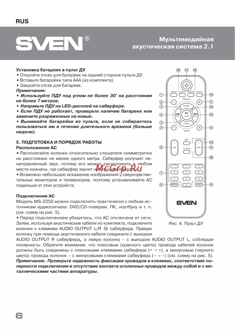 Sven MS-2020Инструкция по эксплуатации -
