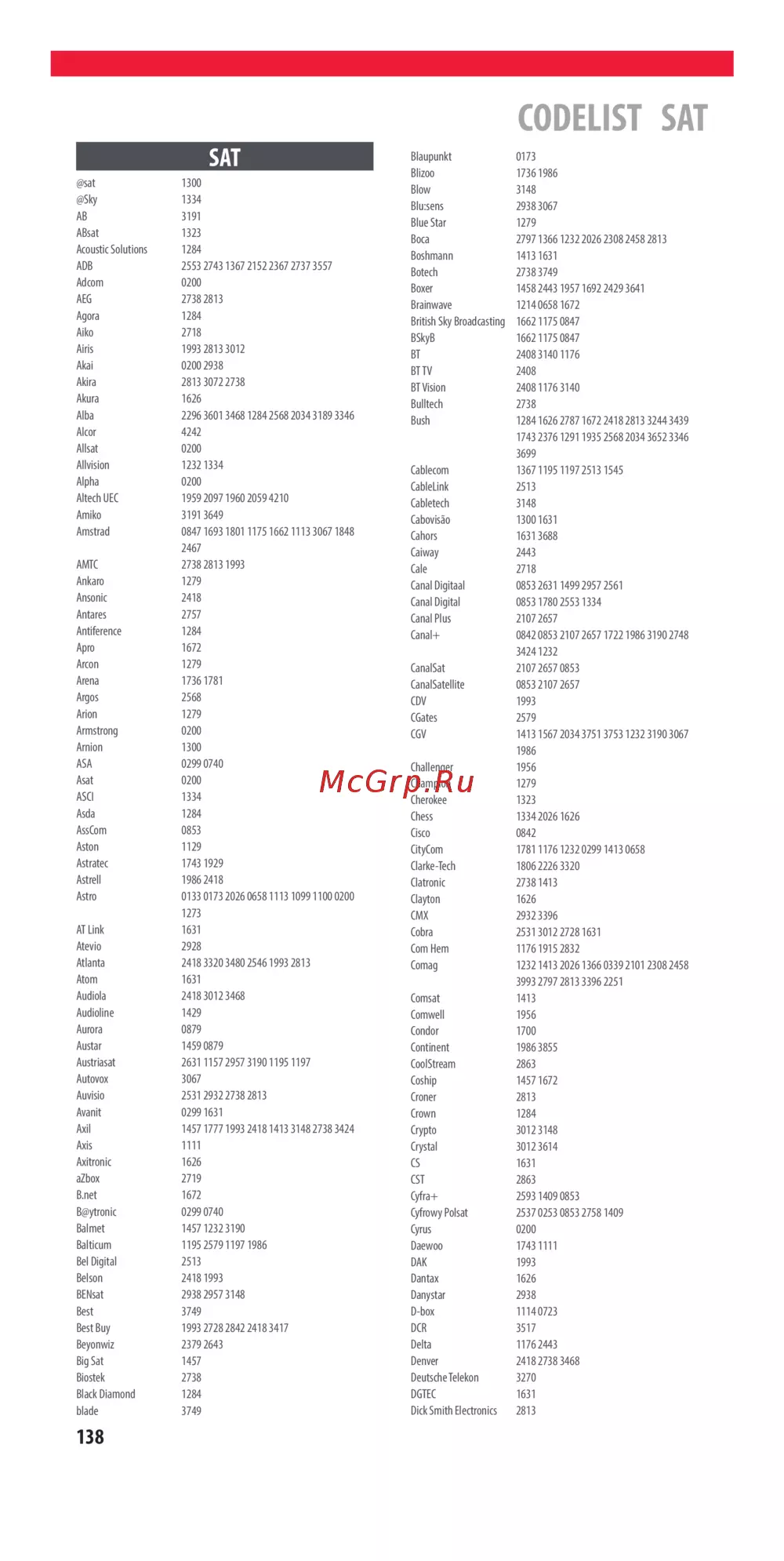 One For All Smart Control 8 (URC 7980) [16/30] Codelist sat