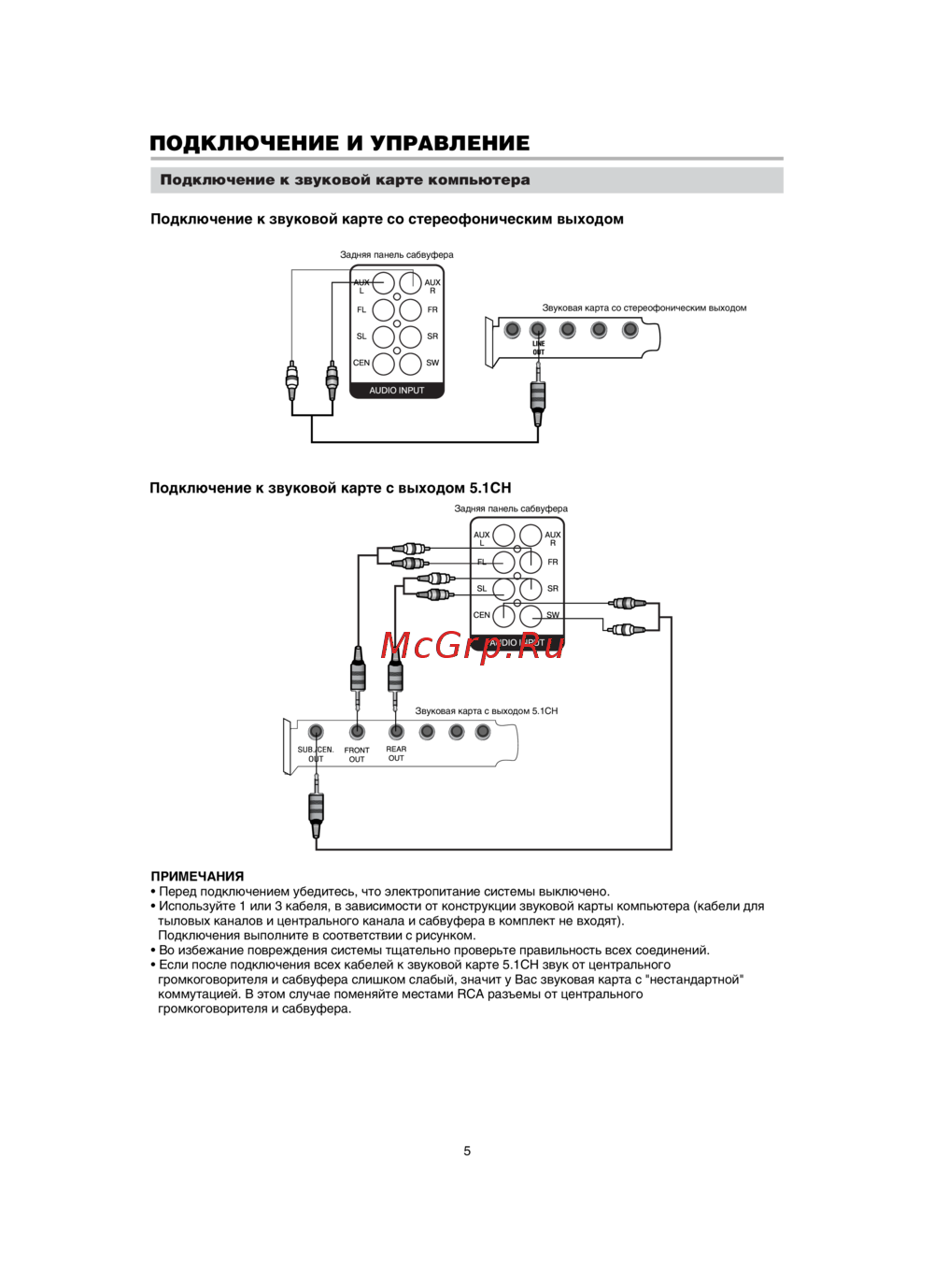 - Подключение к звуковой карте компьютера p.7