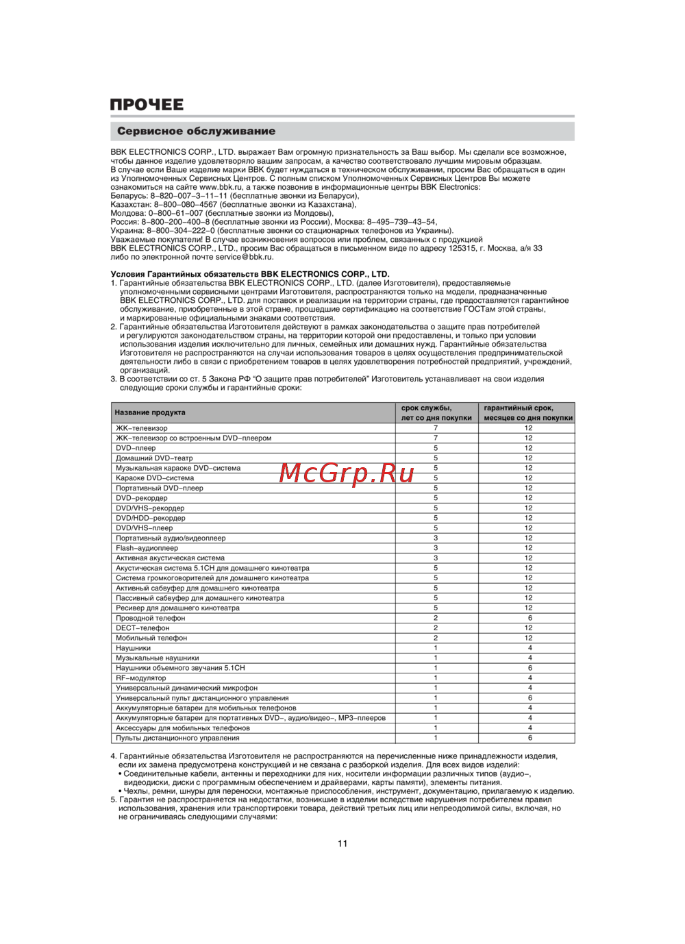 BBK MA-970S — сервисное обслуживание и гарантия на электронику [13/15]