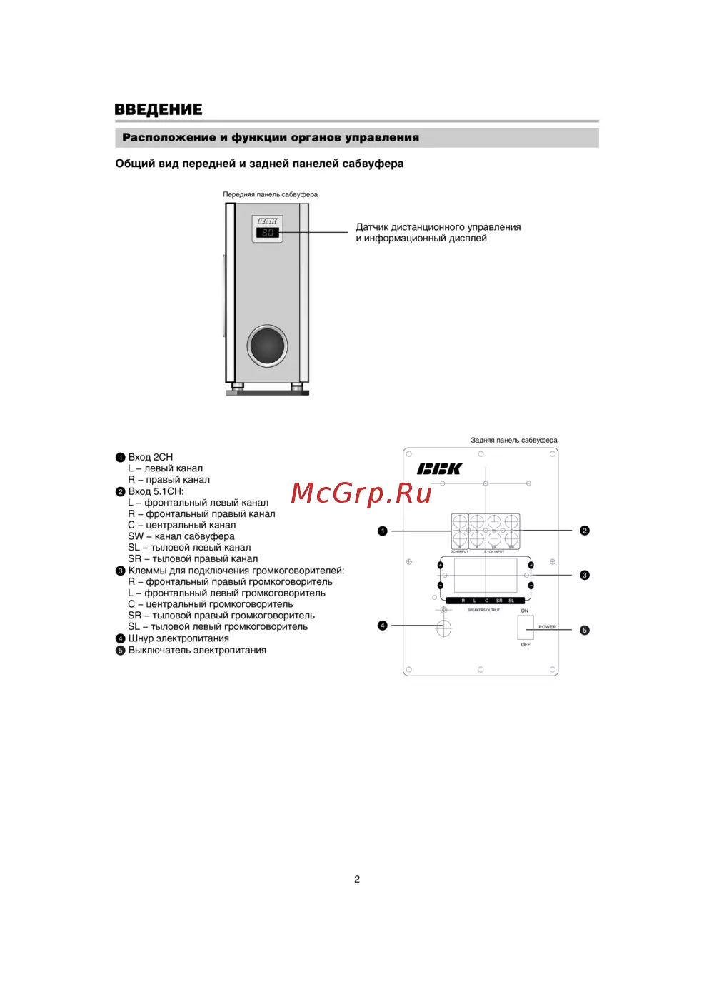 BBK MA-970S — расположение и функции органов управления сабвуфера [4/15]