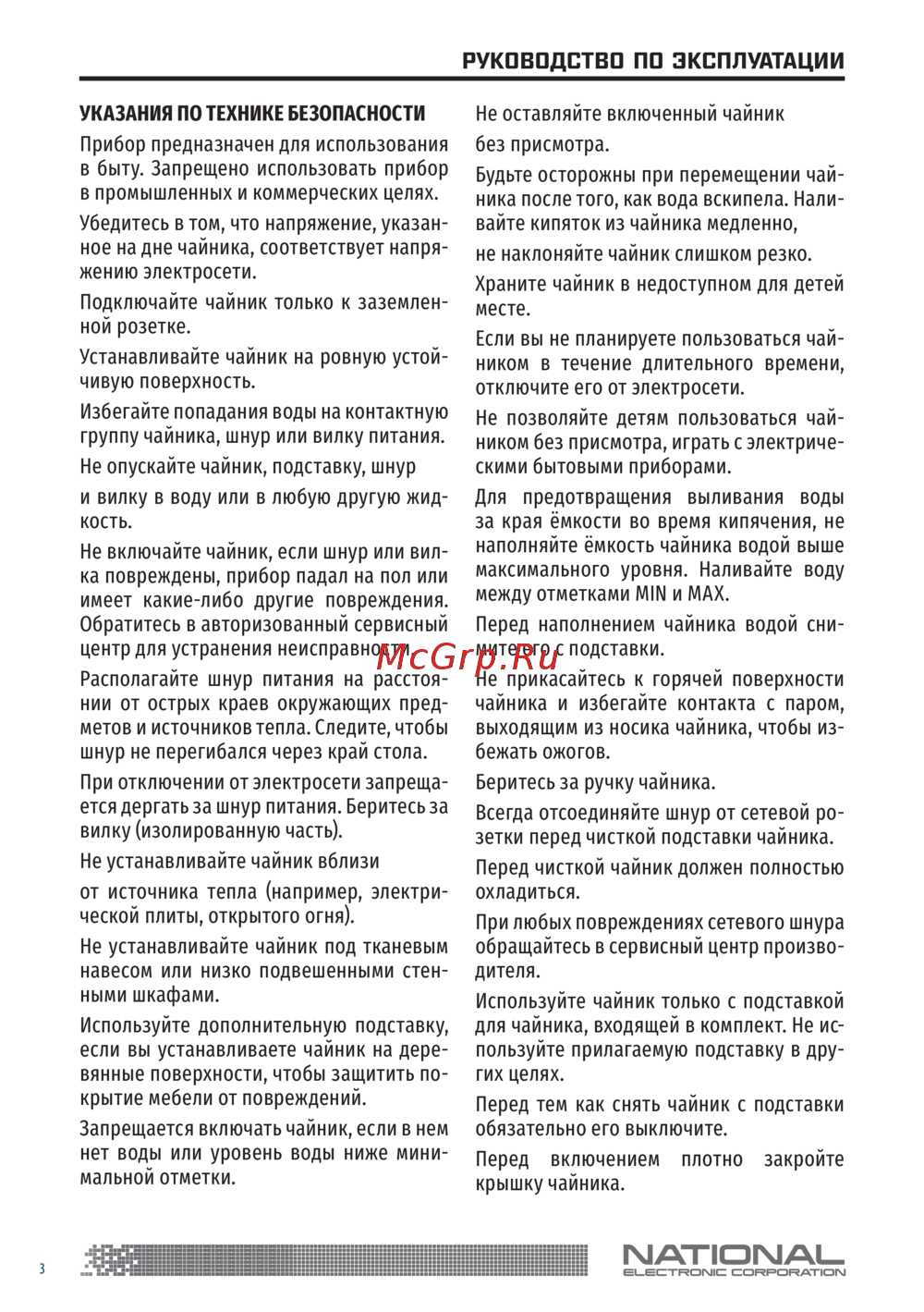 NATIONAL NK-KE18305 — руководство по эксплуатации: безопасное использование чайника [3/7]