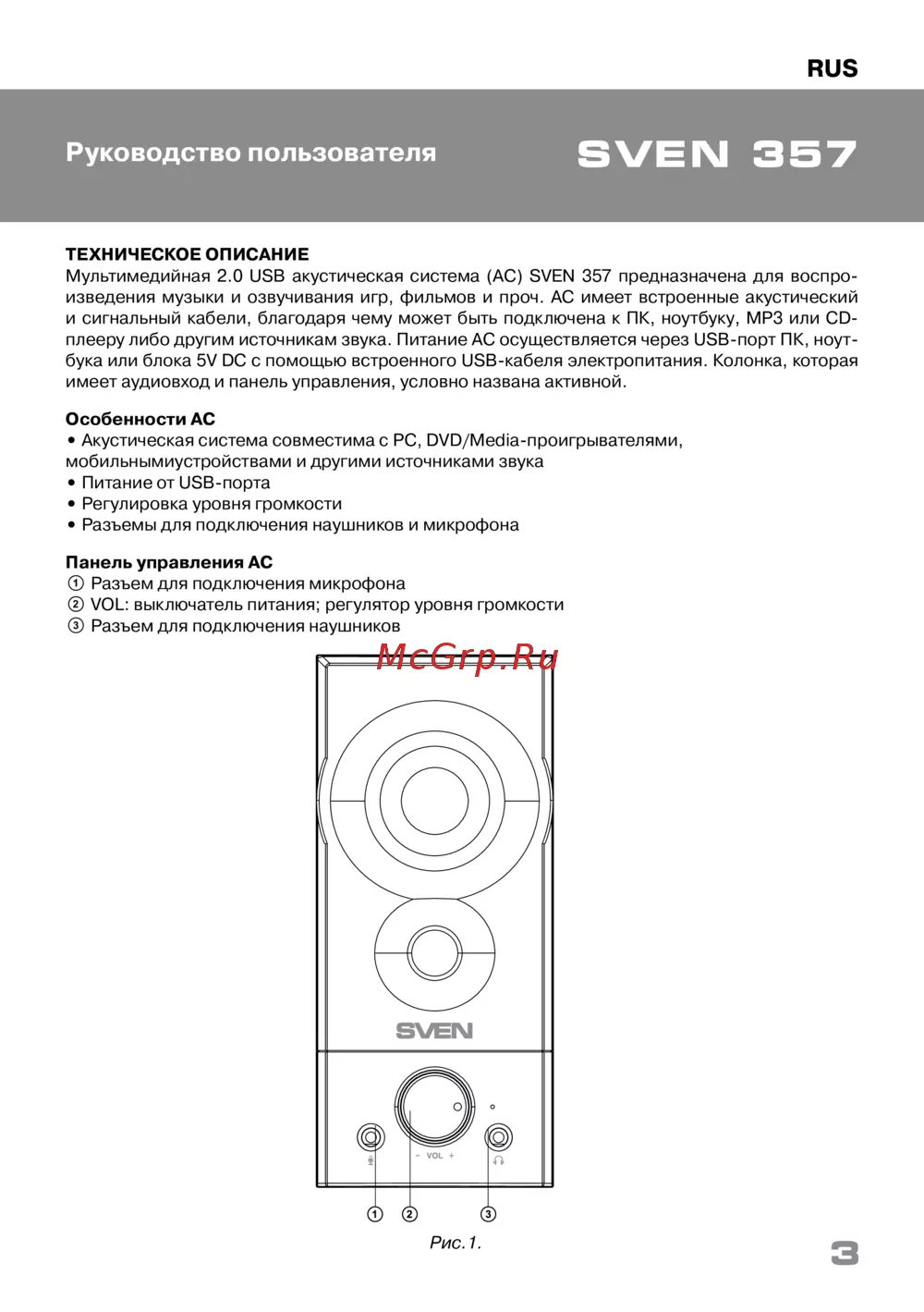 Sven 357 — мультимедийная акустическая система 2.0: руководство пользователя [3/16]