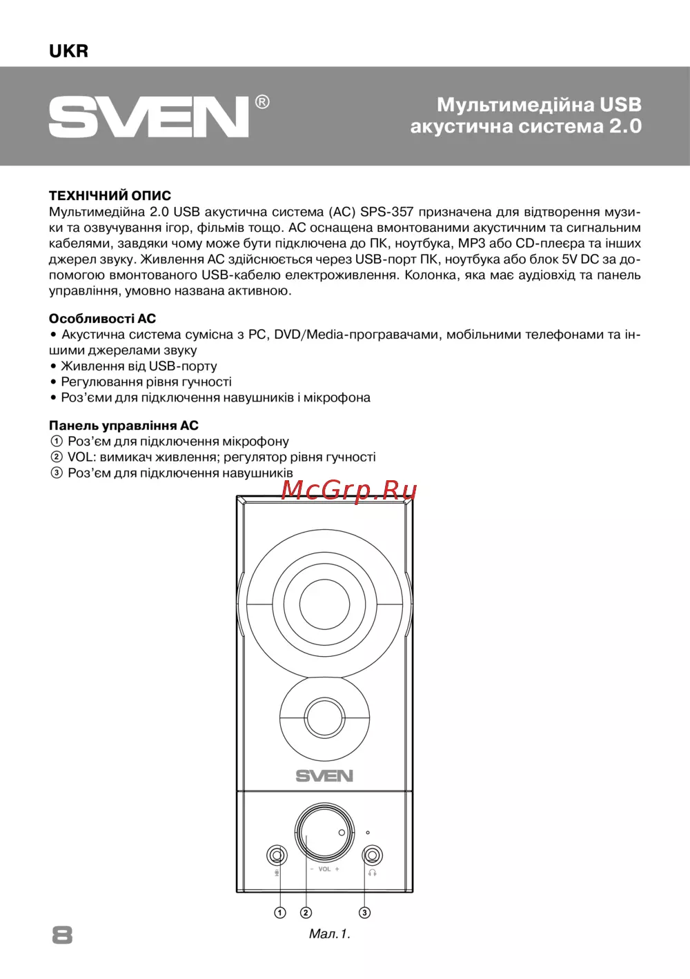 ![Sven 357 [8/16] Мультимедійна usb акустична система 2](/views2/1440487/page8/bg8.png)