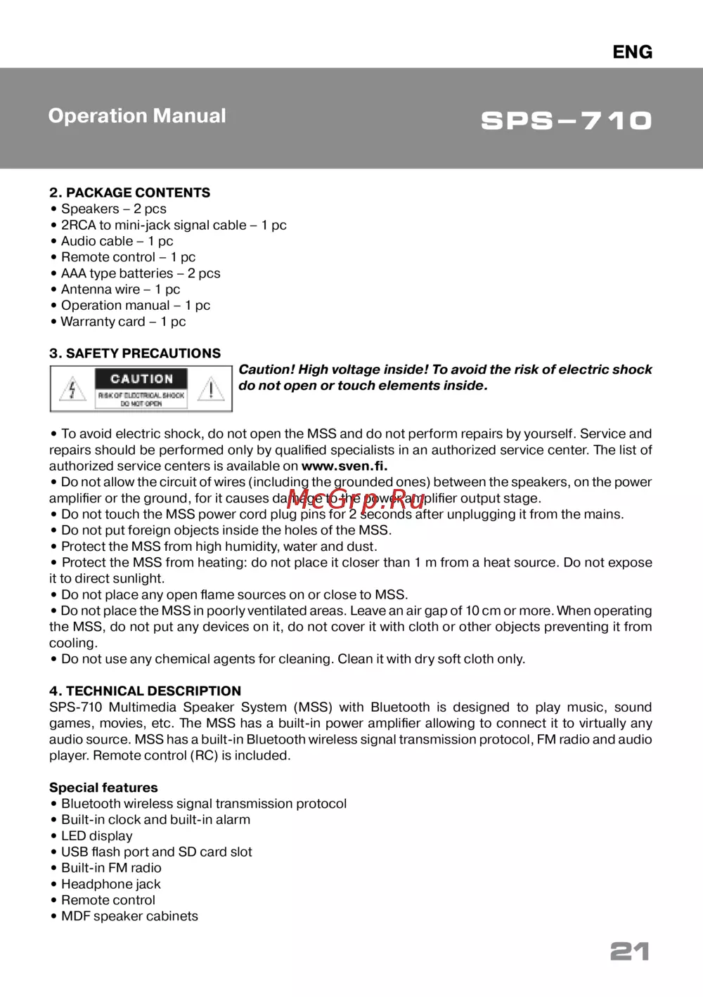 Sven SPS-710 — multimedia Speaker System Operation Manual and Safety Guidelines [21/28]