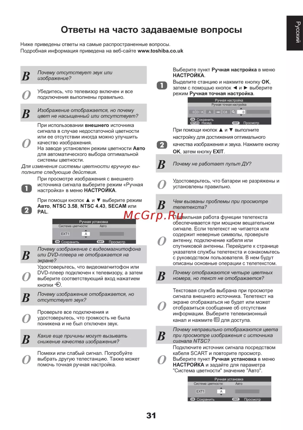 Toshiba 32AV833R — часто задаваемые вопросы о настройке телевизора и изображении [33/41]