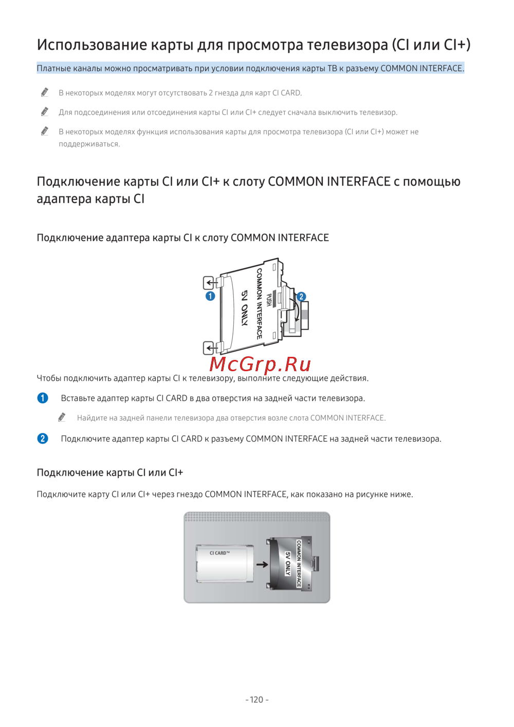 ![Samsung UE65NU7400U [120/188] Подключение карты ci или ci к слоту common interface с помощью адаптера карты ci](/views2/1411967/page120/bg78.png)