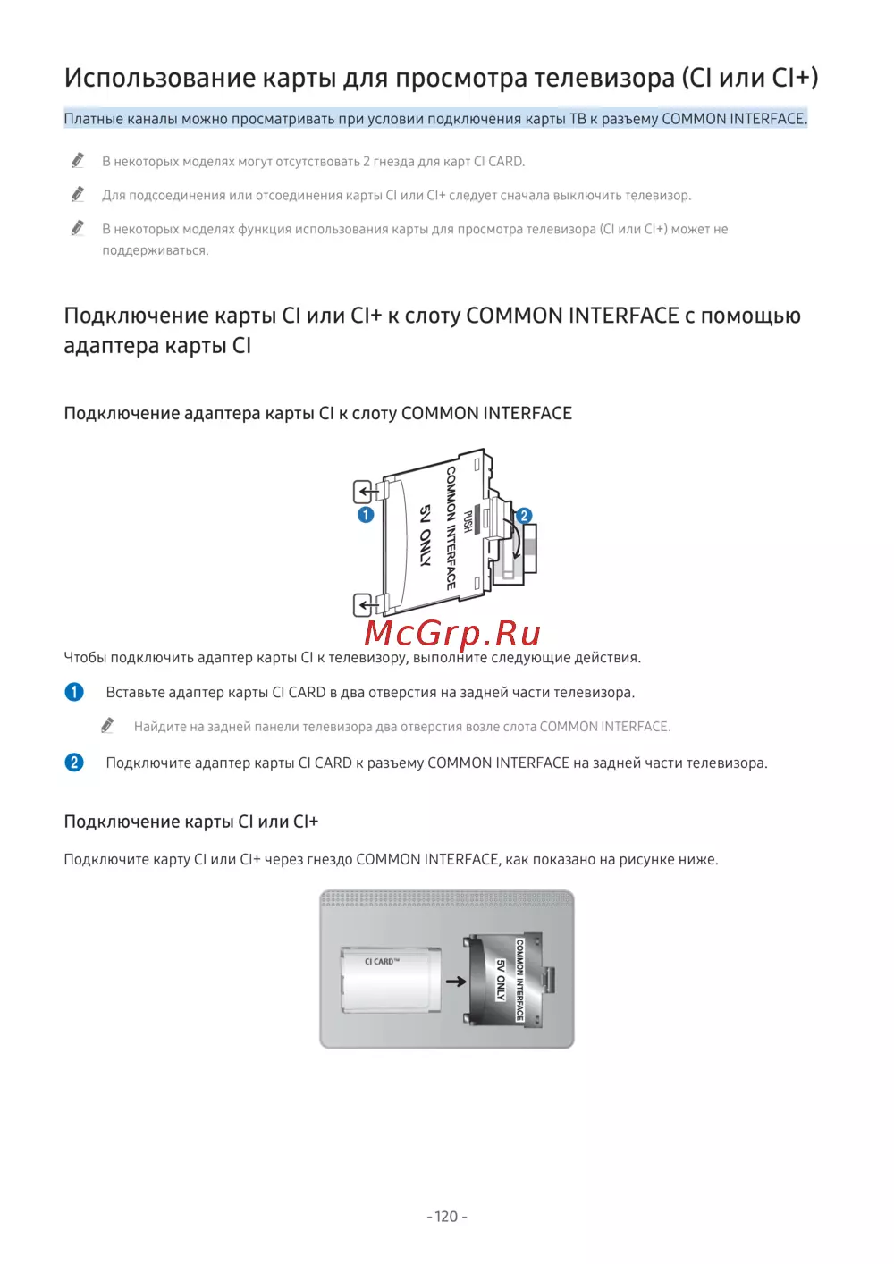 " В некоторых моделях функция использования карты для просмотра телевизора (CI или CI+) может не