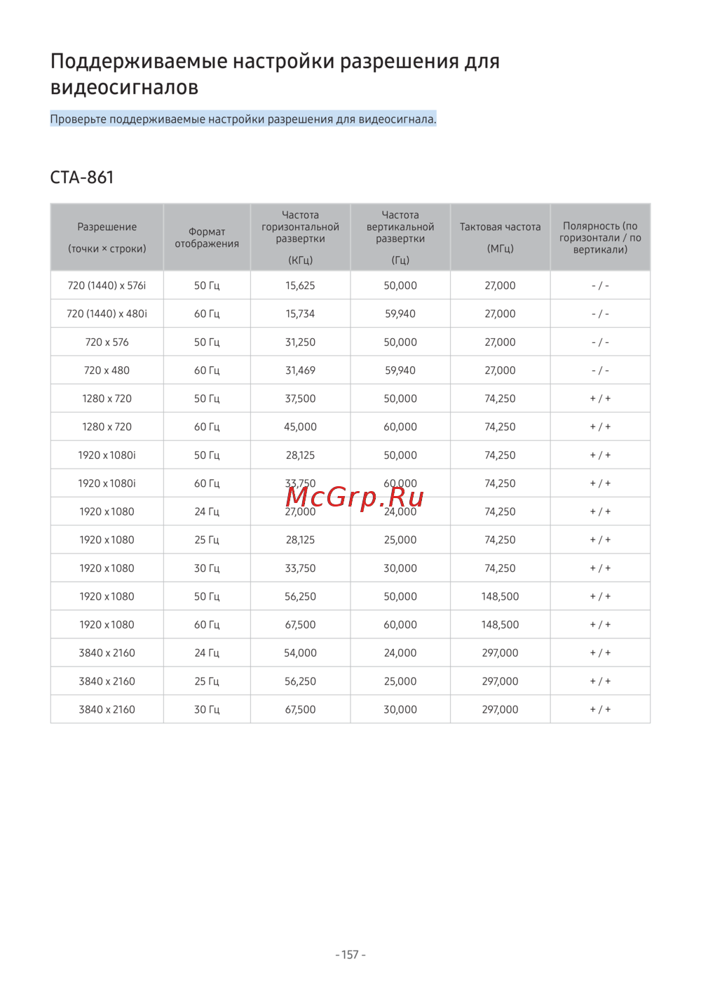 3840 x 2160 30Гц 67,500 30,000 297,000 + / +