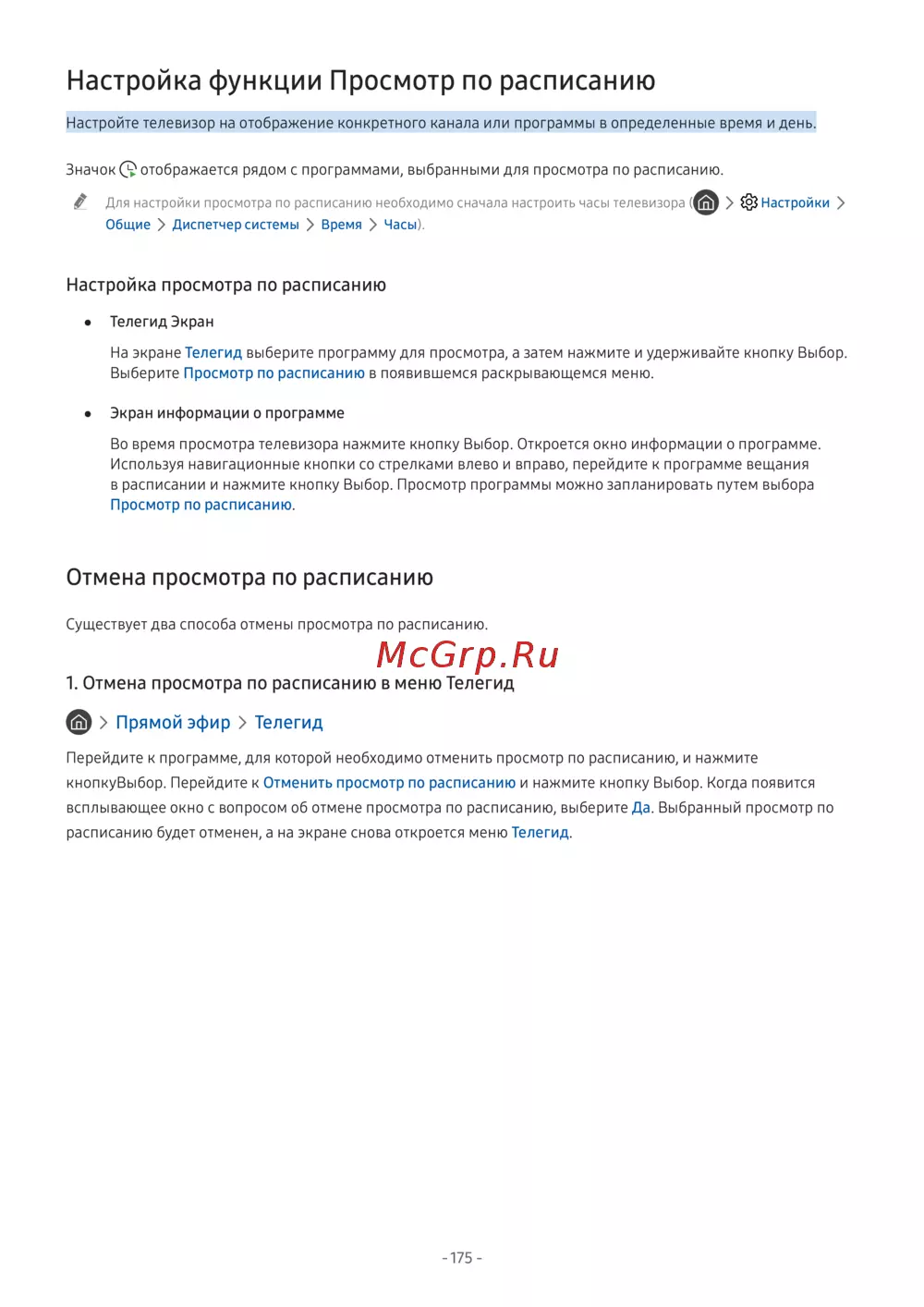 - Отмена просмотра по расписанию в smart hub p.176