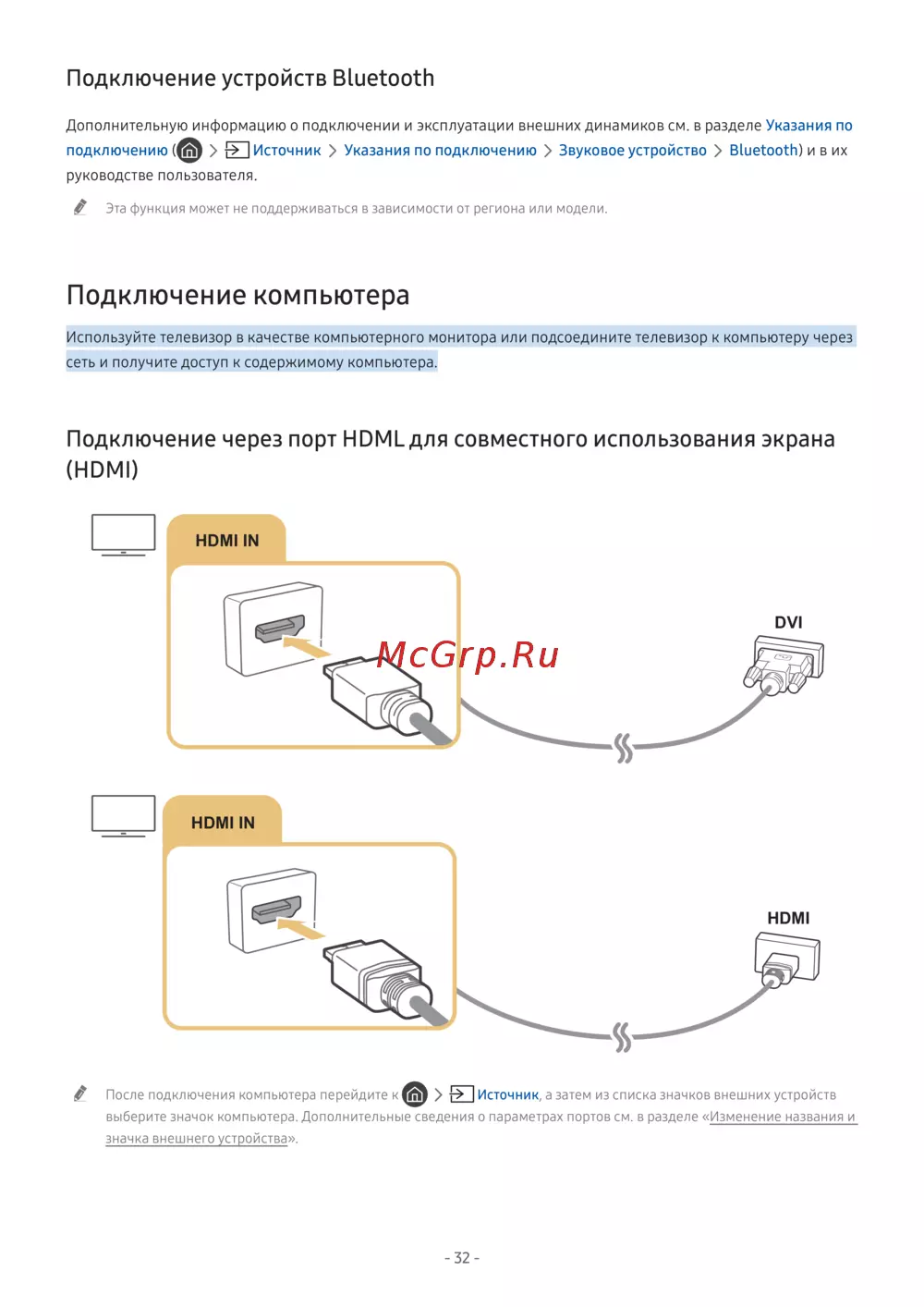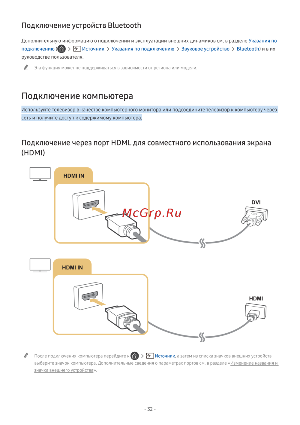 Samsung UE65NU7400U — подключение Bluetooth и компьютера к телевизору: полное руководство [32/188]