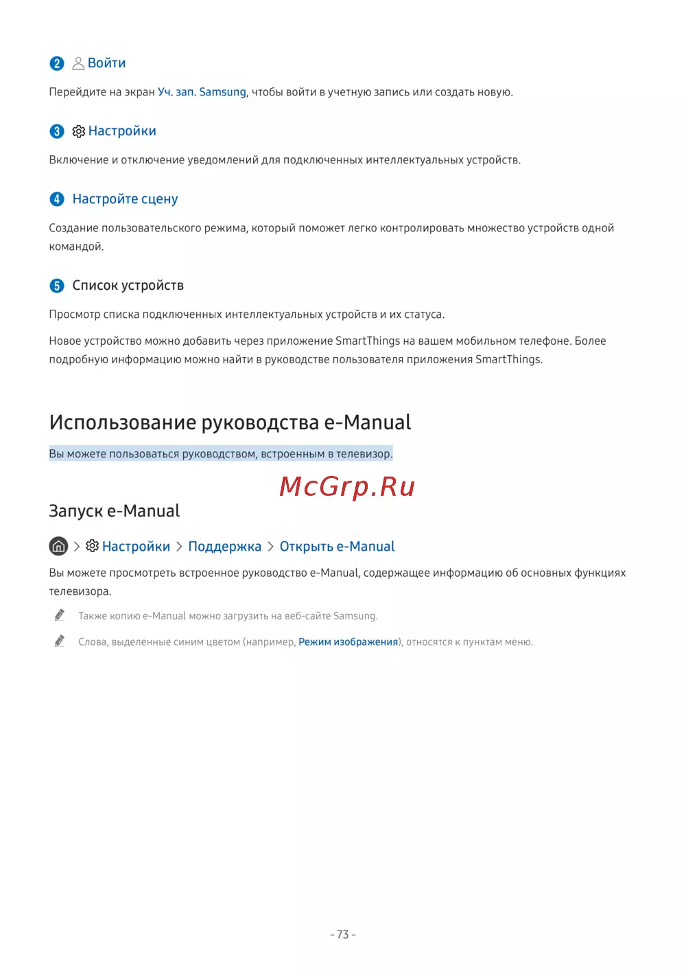 " Также копию e-Manual можно загрузить на веб-сайте Samsung.