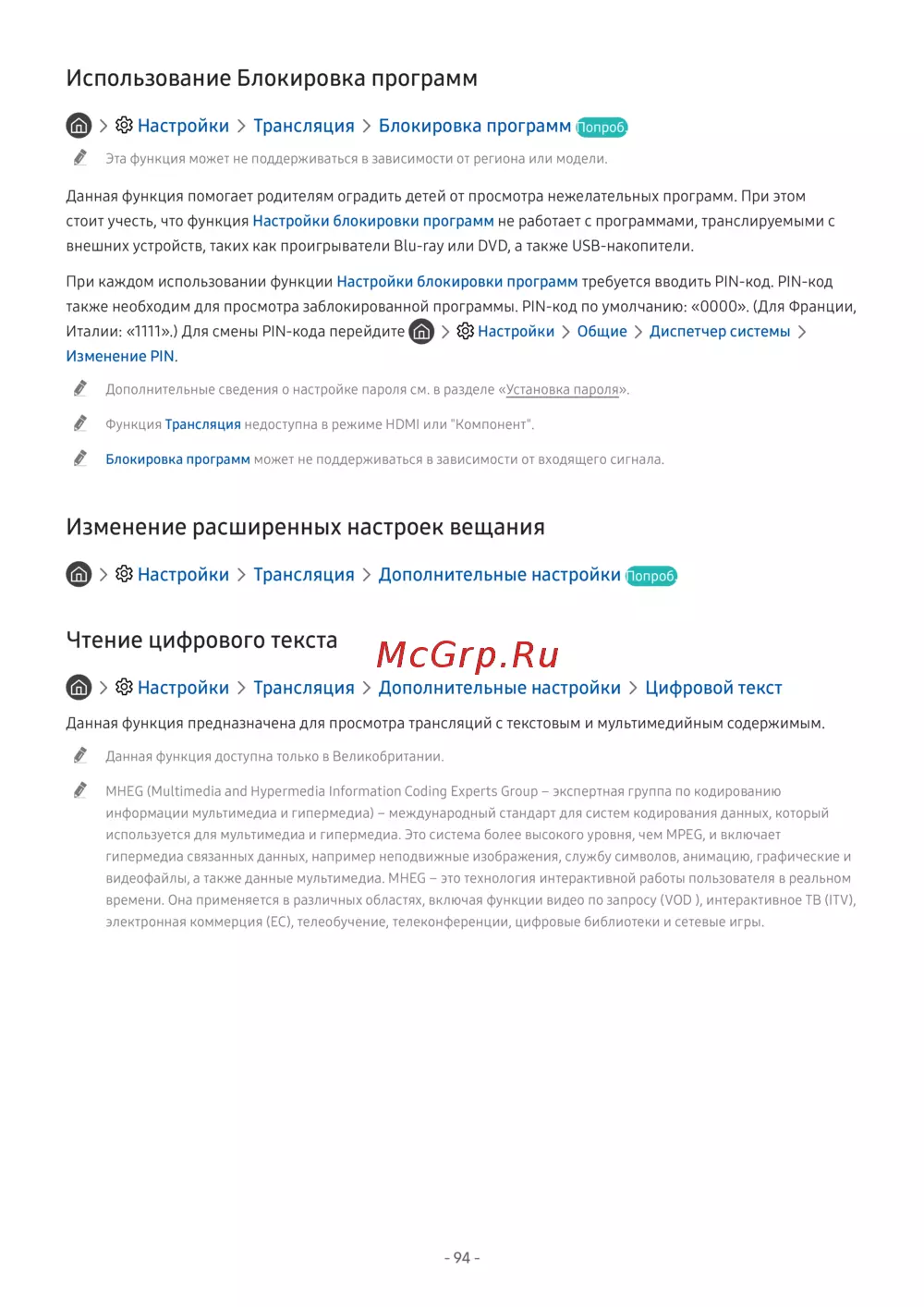 Samsung UE65NU7400U — блокировка программ и настройки трансляции для родителей [94/188]