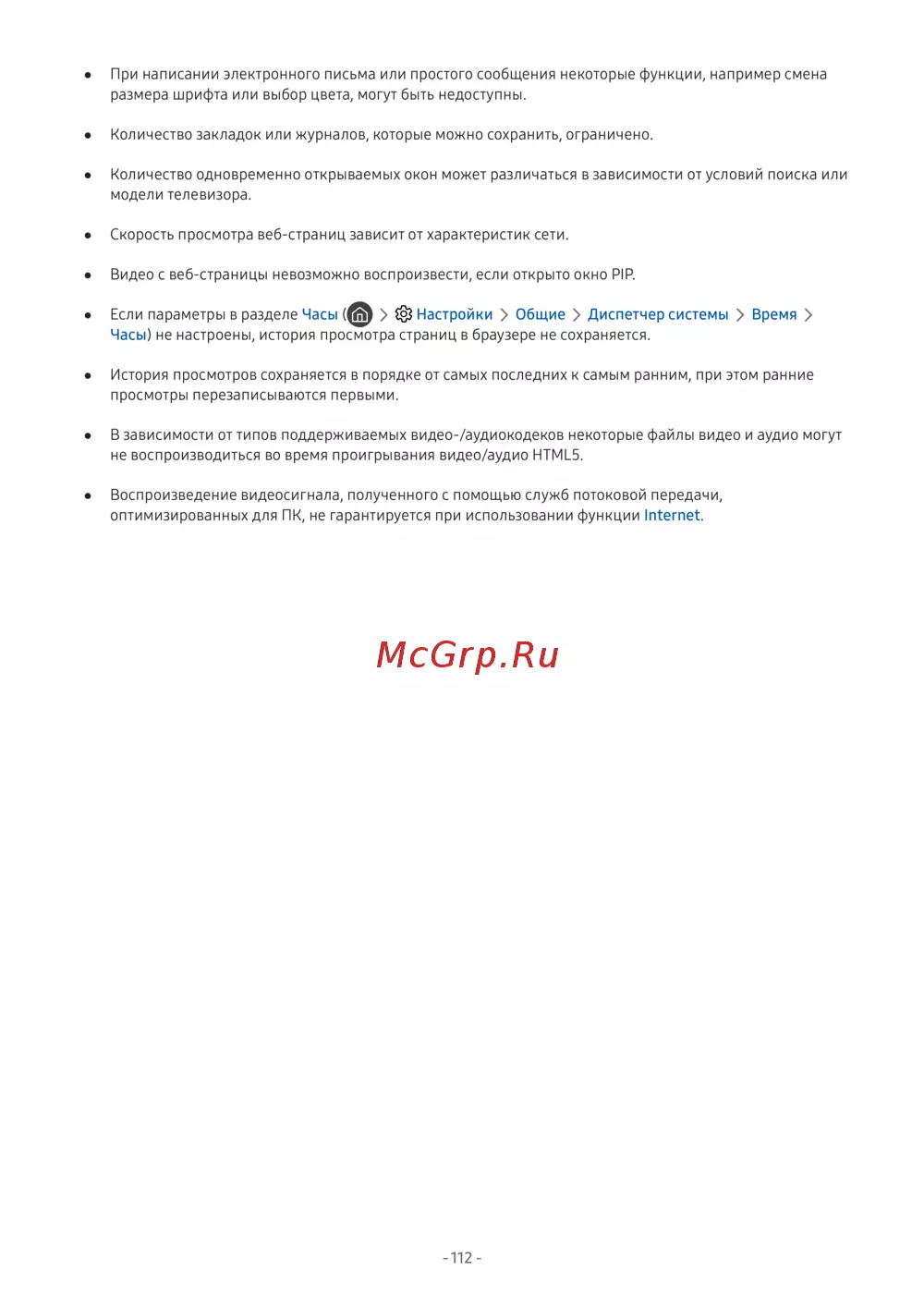 оптимизированных для ПК, не гарантируется при использовании функции Internet.