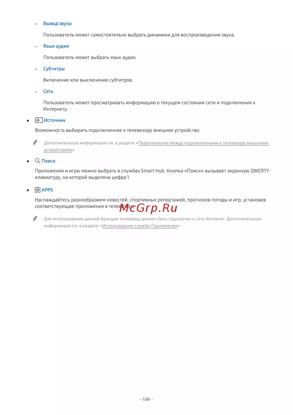 - Описание интеллектуального пульта ду samsung p.134