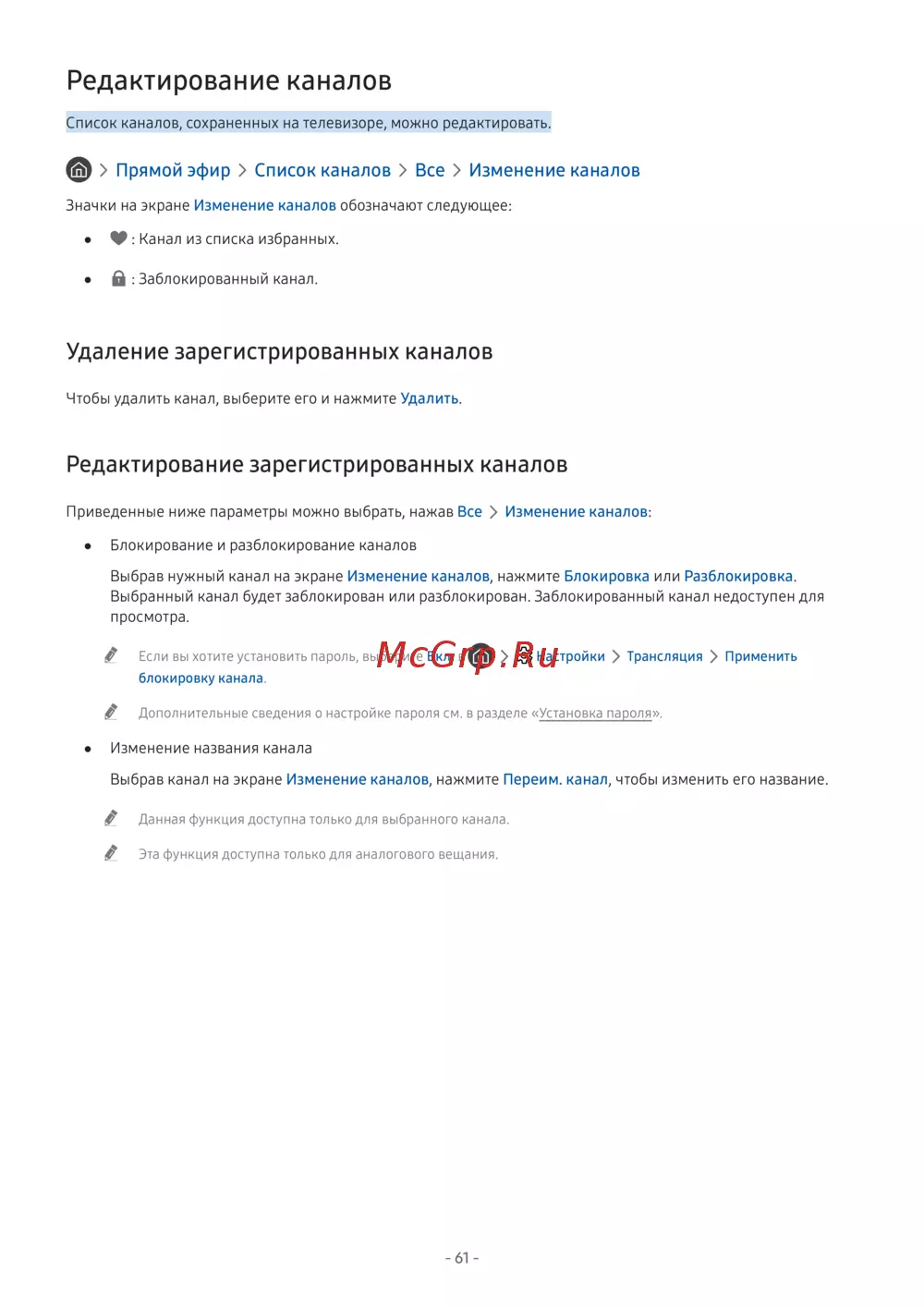 - Регистрация каналов в списке избранного p.148
