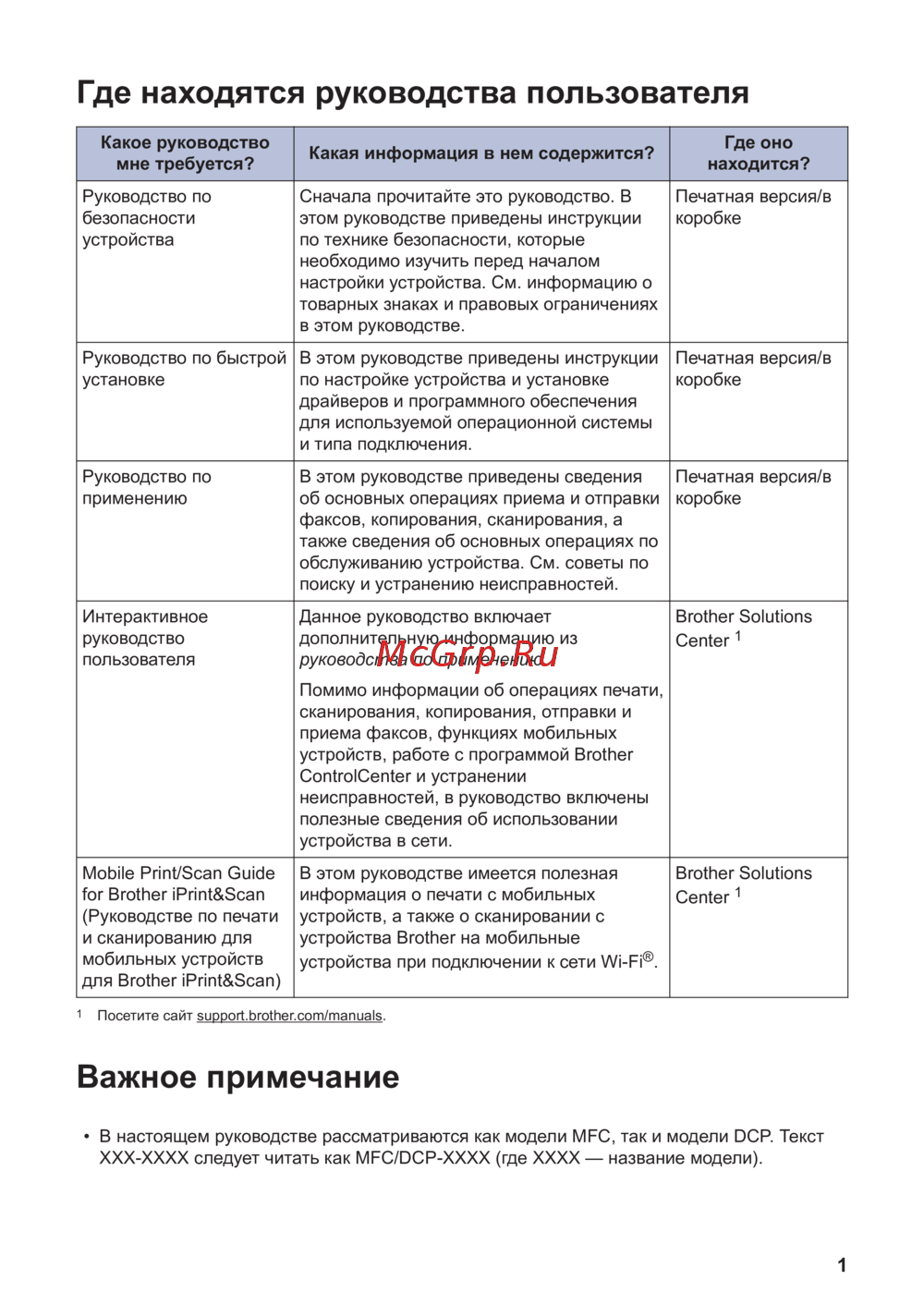 XXX-XXXX следует читать как MFC/DCP-XXXX (где XXXX — название модели).