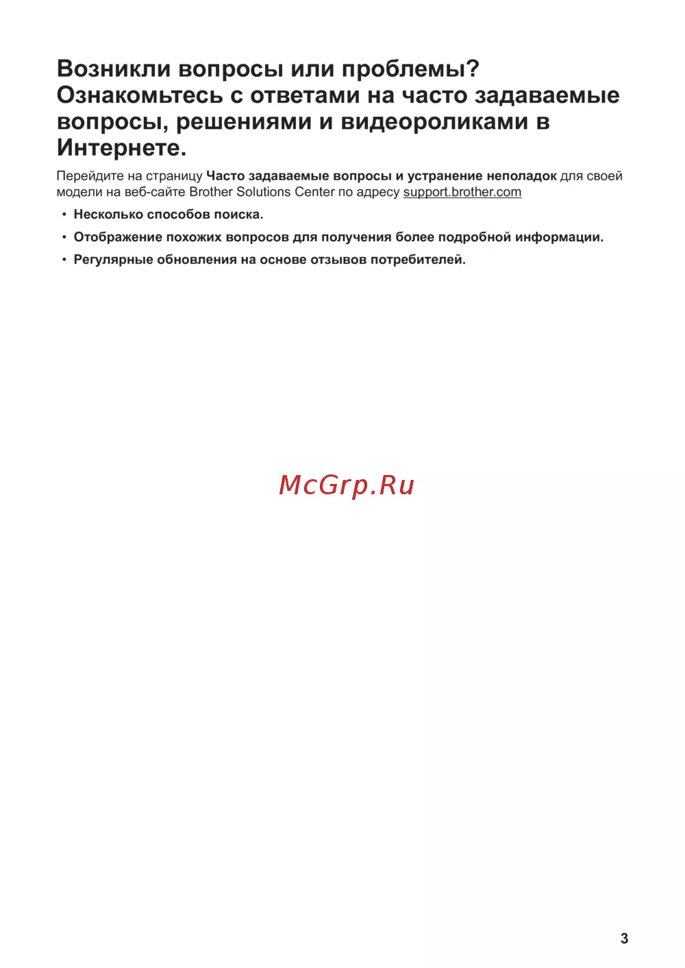 Brother DCP-L8410CDW Белый [4/20] Возникли вопросы или проблемы ознакомьтесь с ответами на часто задаваемые вопросы решениями и видеороликами в интернете