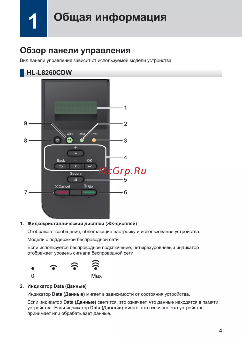 ![Brother HL-L9310CDW [5/20] Обзор панели управления](/views2/1441971/page5/bg5.png)