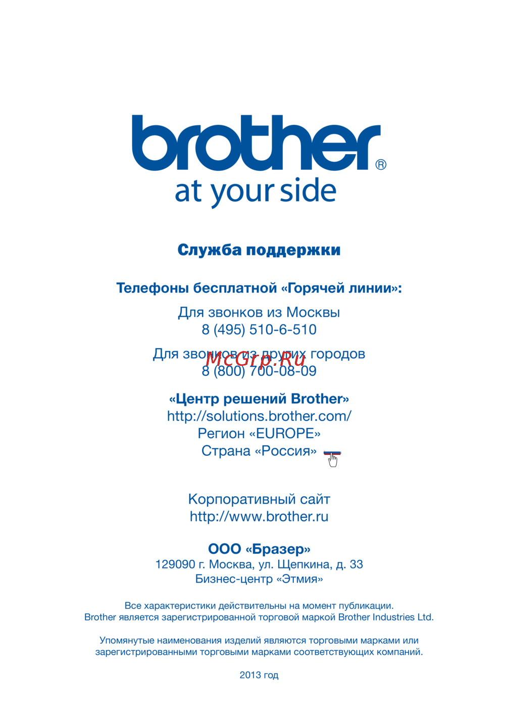 Brother является зарегистрированной торговой маркой Brother Industries Ltd.
