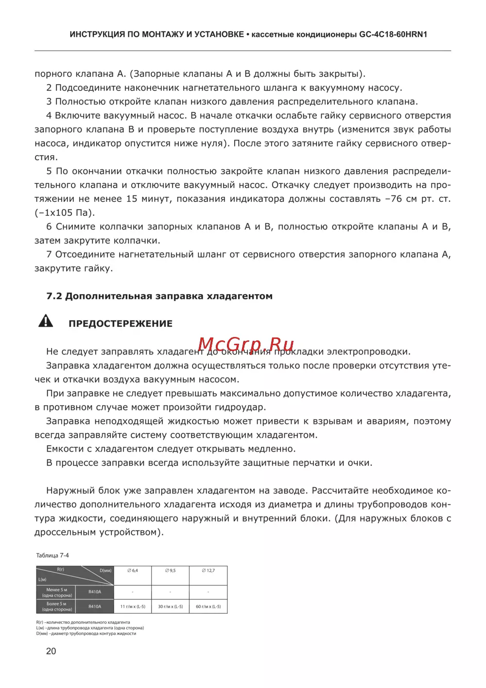 General Climate GC/GU-4C36HRN1 Белый — инструкция по откачке и заправке хладагента в систему [21/53]