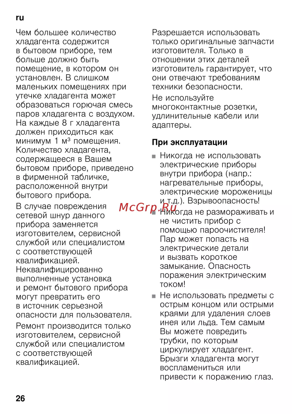 Siemens KG49NSB2AR — правила эксплуатации и безопасности бытовых приборов с хладагентом [26/54]
