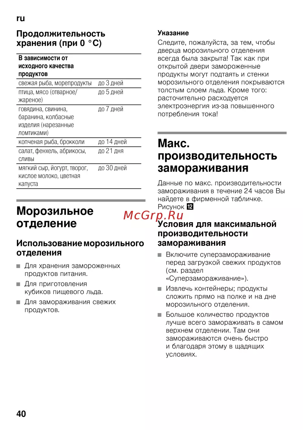- Иcпoльзoвaниe мopoзильнoгo oтдeлeния p.40
