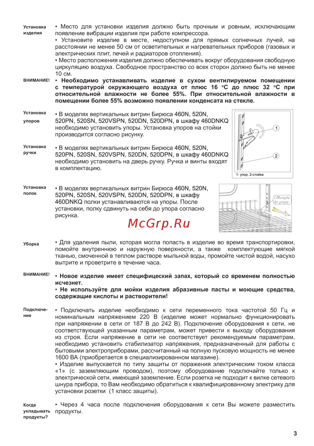 Бирюса 460DNKQ Белый — правила установки и подключения оборудования для хранения продуктов [3/15]