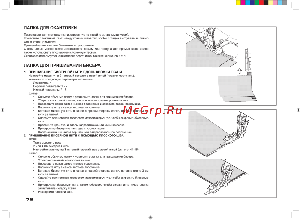 Jaguar M-4982D Pro [74/82] Пришивание бисерной нити вдоль кромки ткани