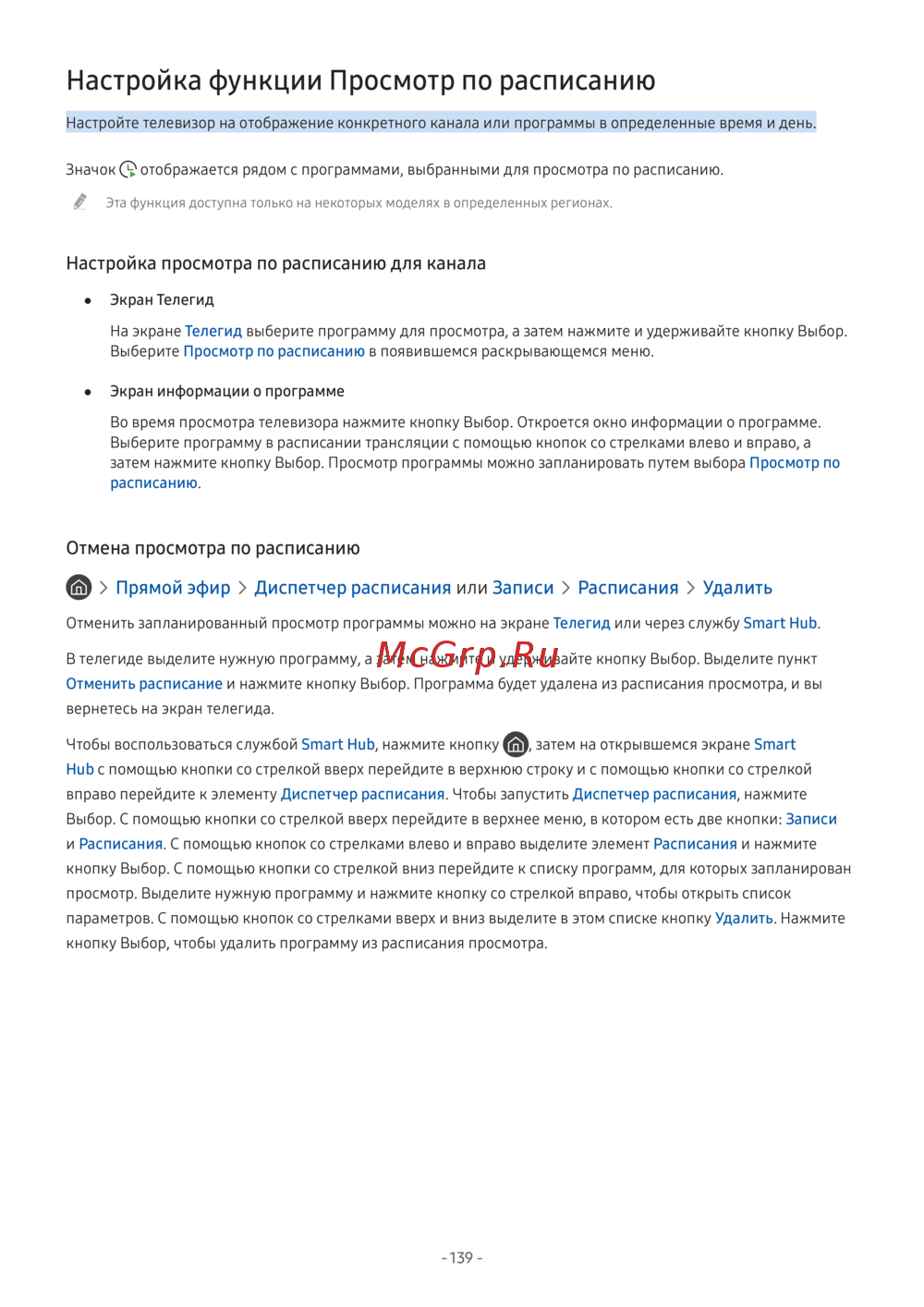 Отменить запланированный просмотр программы можно на экране Телегид или через службу Smart Hub.
