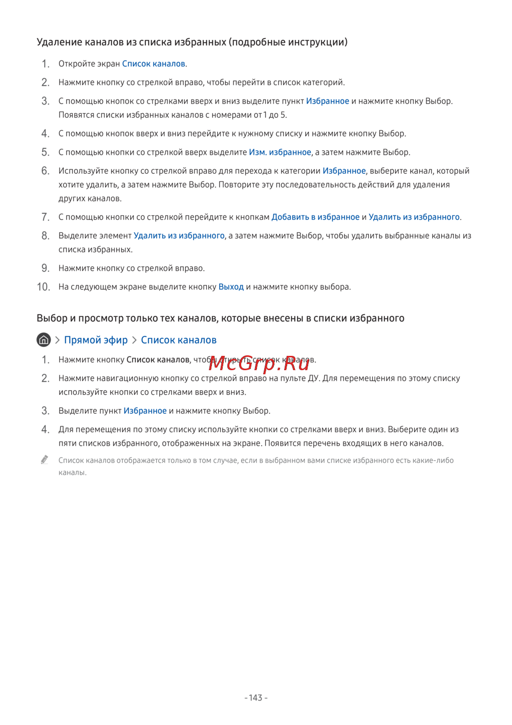 - Удаление каналов из списка избранных подробные инструкции p.149