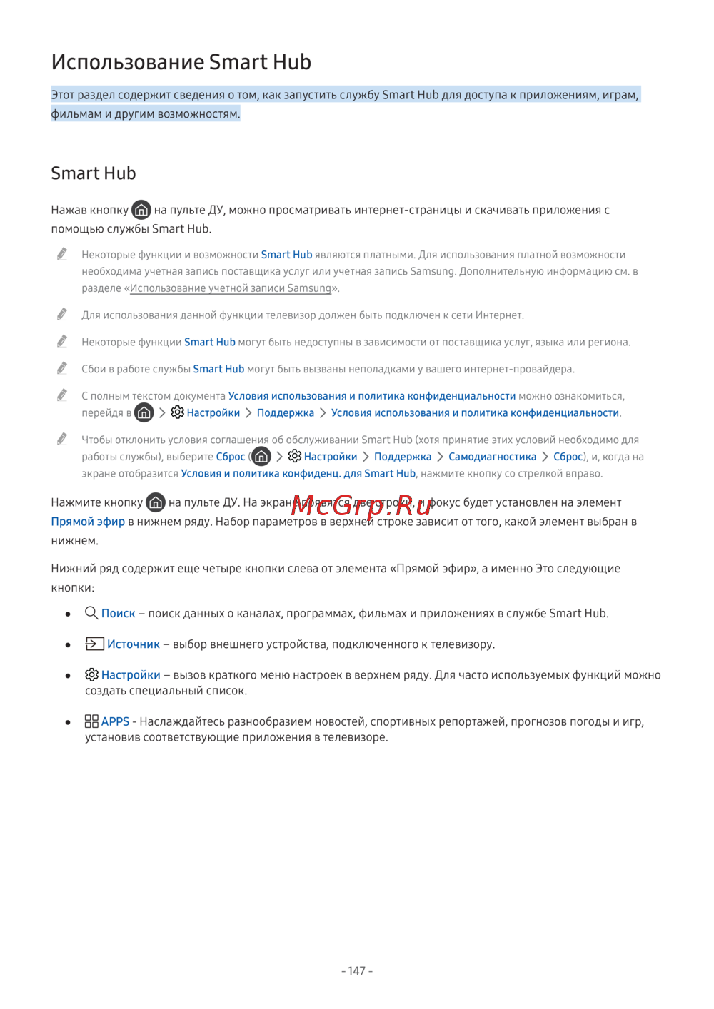 - Этот раздел содержит сведения о том как запустить службу smart hub для доступа к приложениям играм p.153