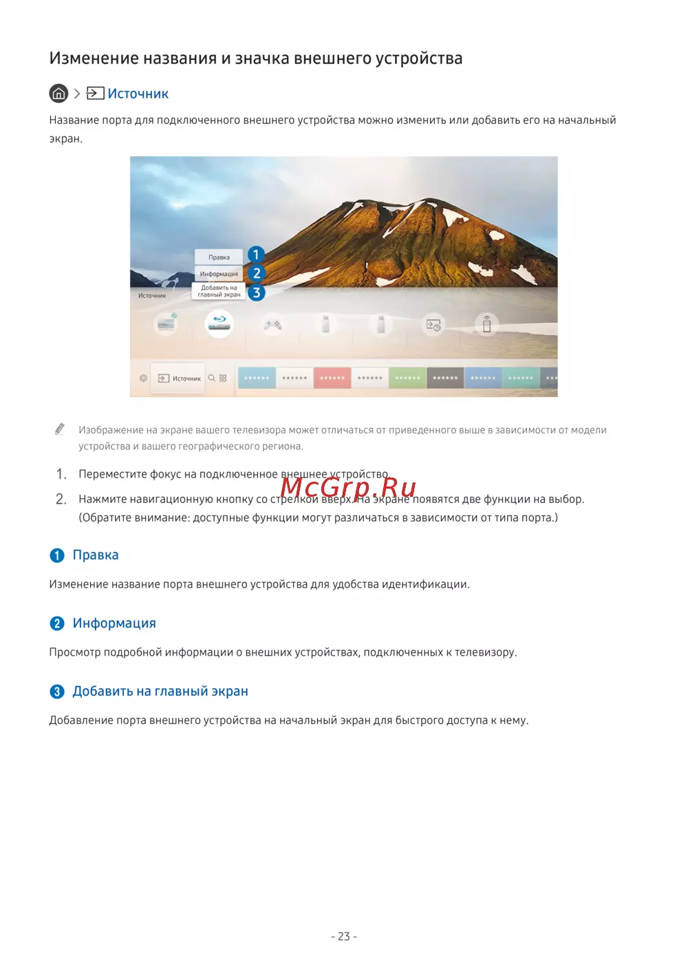 - Источник выбор внешнего устройства подключенного к телевизору p.153