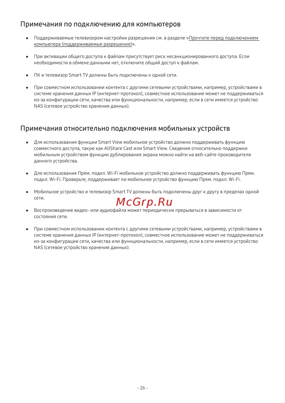 ● Для использования функции Smart View мобильное устройство должно поддерживать функцию