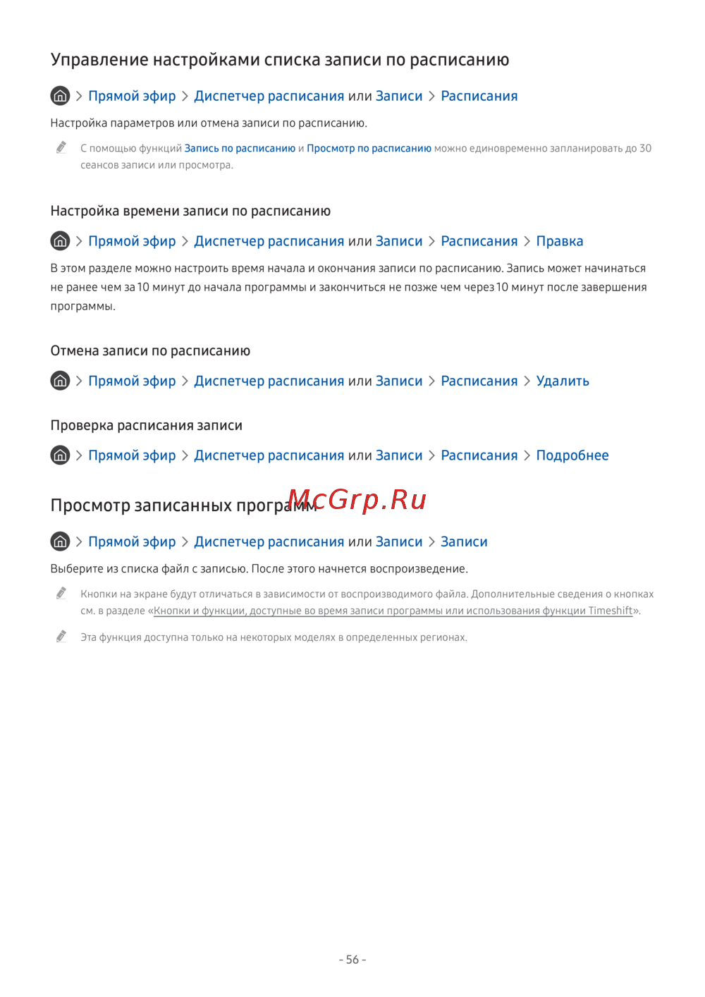 " С помощью функций Запись по расписанию и Просмотр по расписанию можно единовременно запланировать до 30