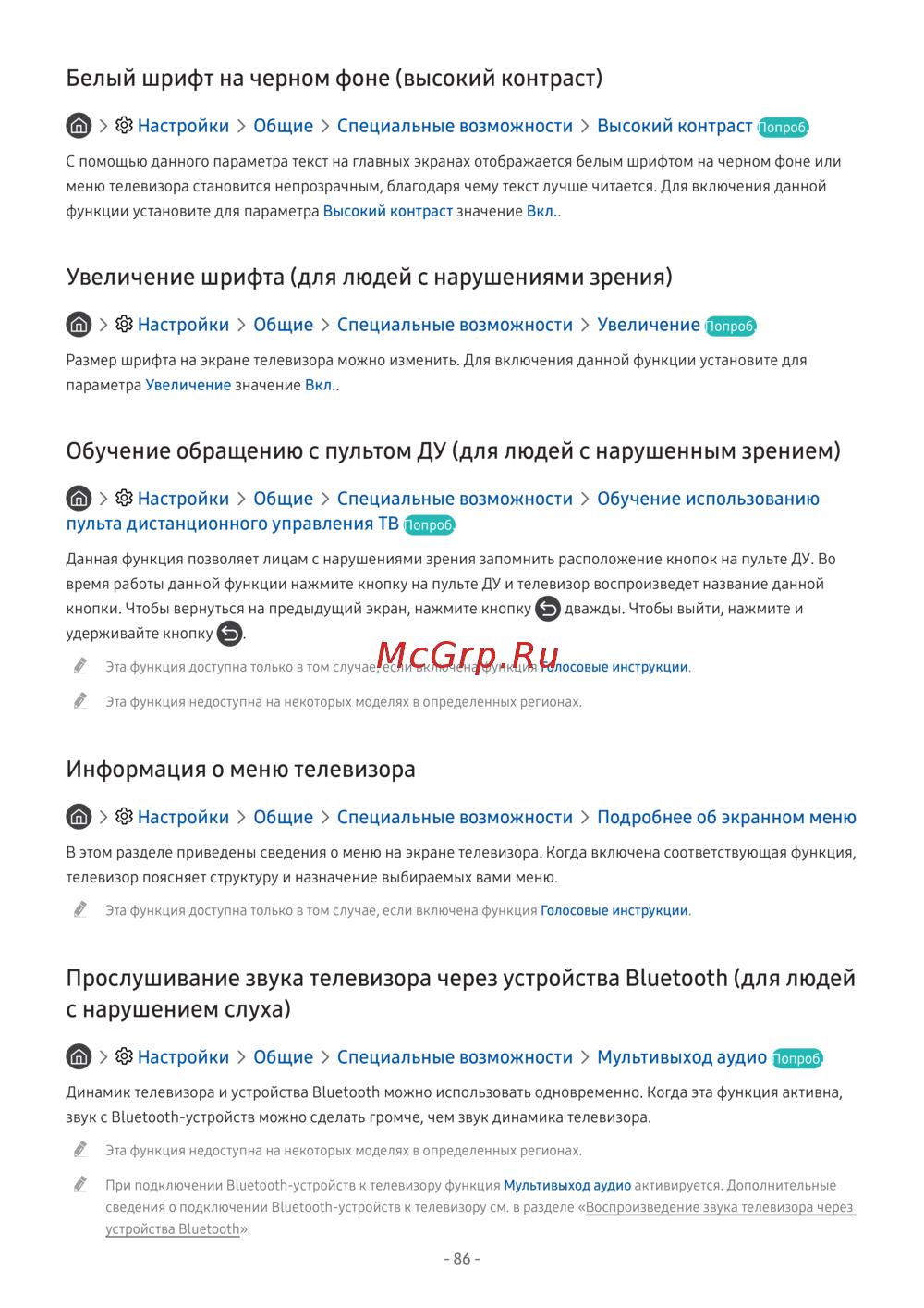 Samsung LT-24 H 390 SIX — настройки специальных возможностей для улучшения восприятия информации [92/157]